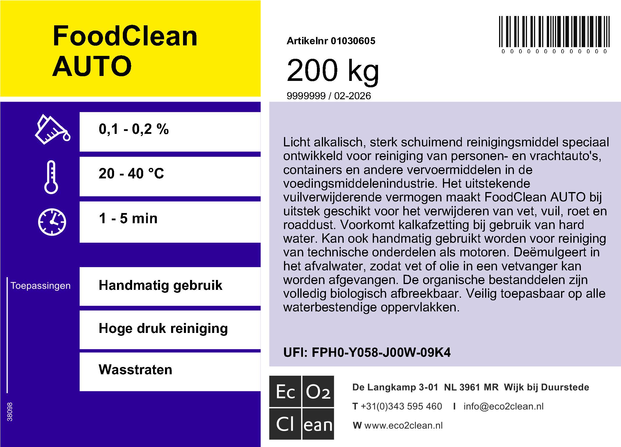Licht alkalisch, sterk schuimend reinigingsmiddel speciaal voor reiniging van personen- en vrachtauto’s, containers en andere vervoersmiddelen.